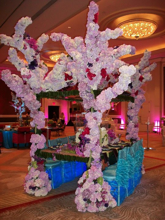 wedding florist and decor Washington dc Here are the picture of our centerpiece .The theme was fairy tale so we decided to use a life model on top on 8 ft Lucite stage with 4 live huge trees out 5000 flowers.